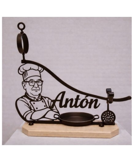 Medidas de la base de madera: 50 x 21 cm. Altura aproximada: 55 cm. ENVÍO GRATIS A TODA LA PENÍNSULA. Desde Forja Campos llevamos más de 30 años dedicándonos a la artesanía y fabricación de productos en forja. Nuestros artículos aúnan el diseño y...